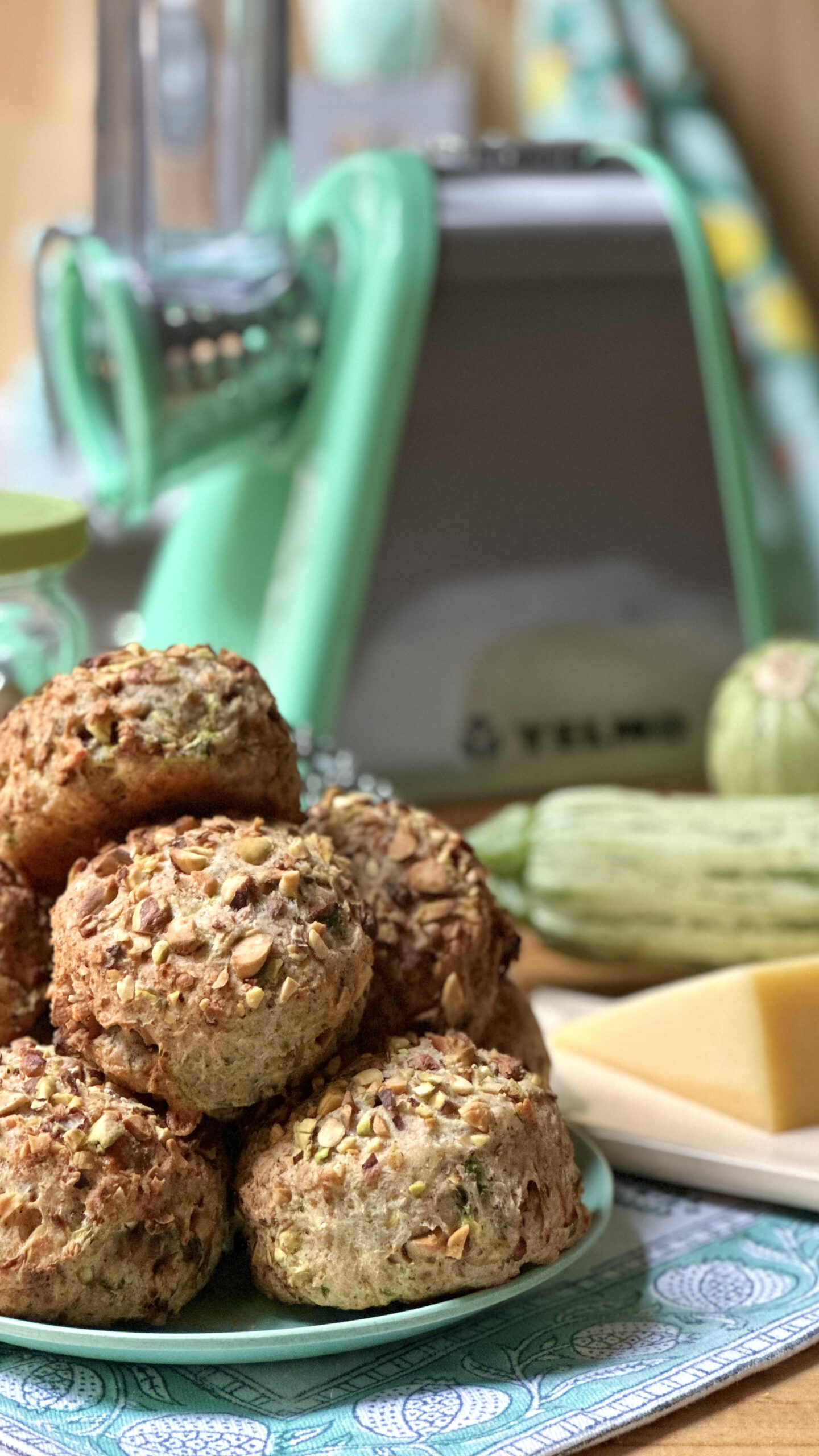 – Para rallar el zucchini usamos el cono de rallado grueso. Y es buenísimo porque no queda con liquido, entonces no es necesario escurrir.